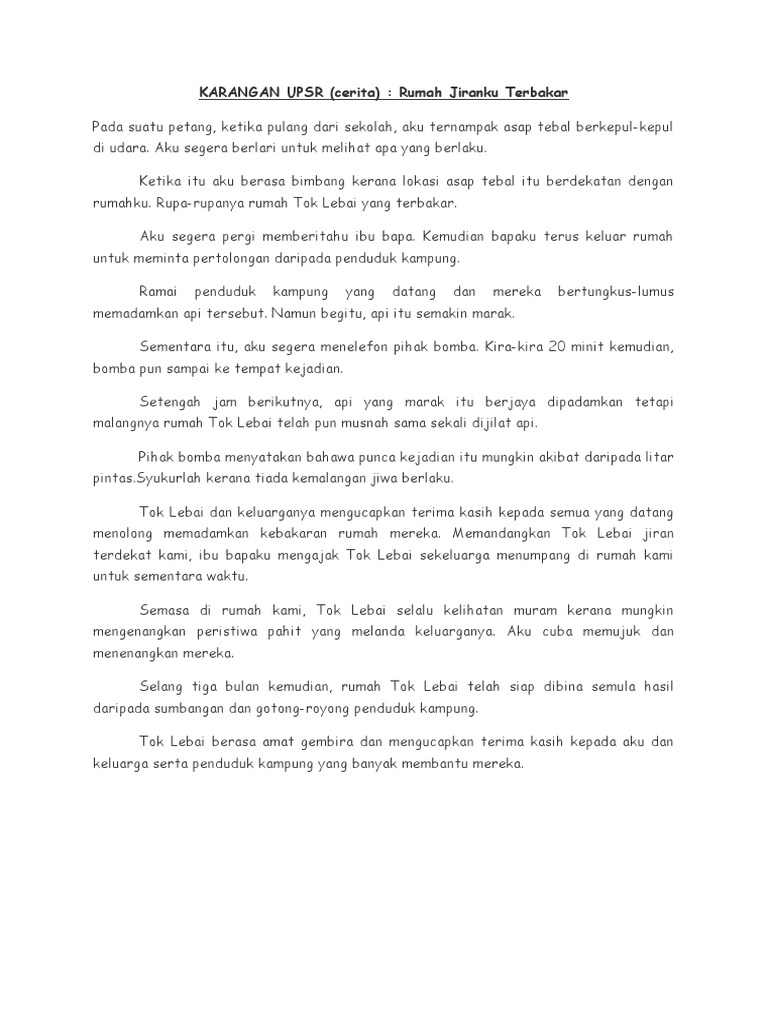 Contoh Karangan Jenis Tindakan Upsr Seperti Menolong Apabali Melihat Kebakaran